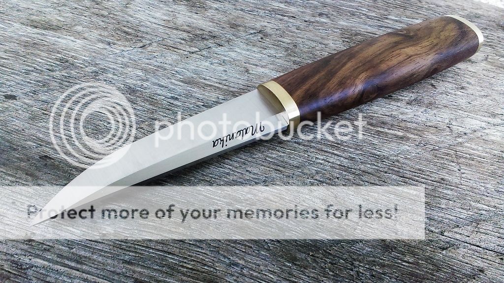 Rhombic cross section blade is in CPM M4 steel,heat treated by peters ht to 63,with cryo. Cutting edge is 3.75" , thickness 0.17"