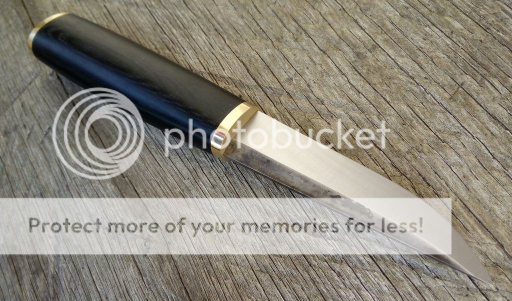 Rhombic cross section blade is in 80crv2 steel and has 3.7" cutting edge , thickness 0.17" (0.09" at spine)