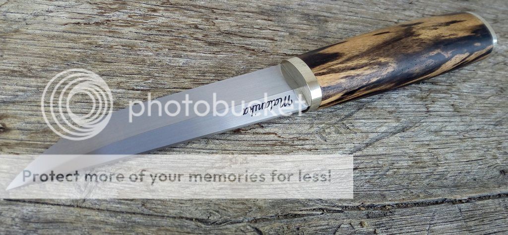 Rhombic cross section blade is in 80crv2 steel and has 4.25" cutting edge , thickness 0.175" (0.07" at spine)
