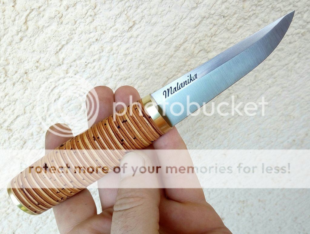 Rhombic cross section blade is in bohler n690 stainless steel and has 3.45" cutting edge , thickness 0.17" (0.1" at spine).