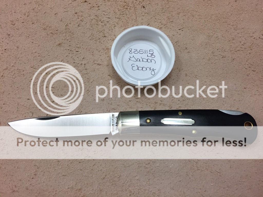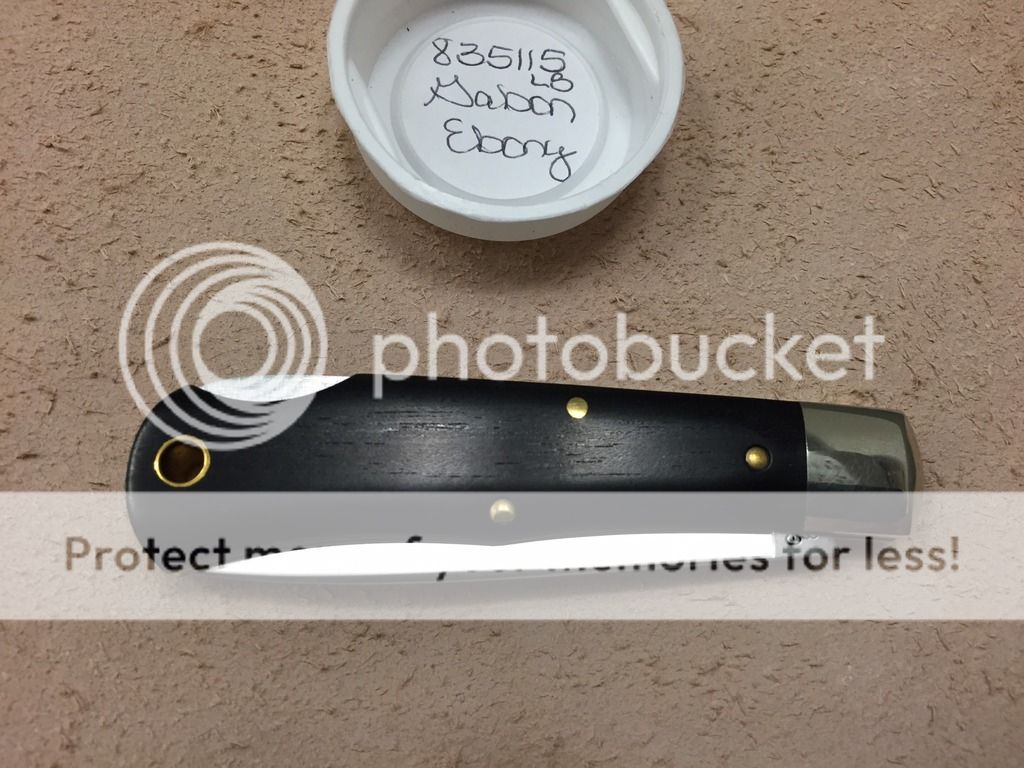 Last up is a GEC 83 drop point in ebony. This knife has not been used, and has typical top notch GEC fit and finish. The ebony is very dark and smooth, and the blade has the ppp etch. The original tube is included.