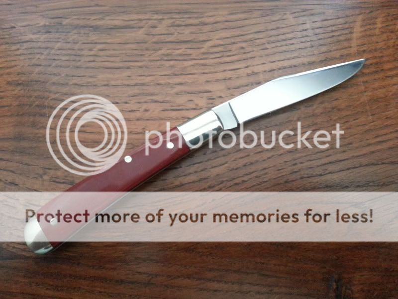 Canal Street Cutlery Half Moon Trapper w/ Fireball Red Micarta Scales. SOLD