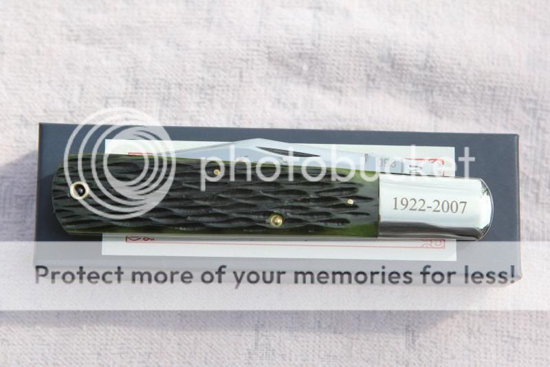 QUEEN CUTLERY 85TH ANNIVERSARY GRANDADDY BARLOW KNIFE GREEN JIG BONE LE 93 OF 300 With The StanHope Lens In The Lanyard Hole