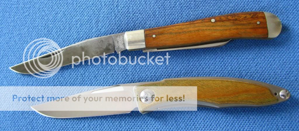 I have had several 48 patterns over the years, both Tidioute and Northfield. Right now I have a two blade 48 with a regular clip point and spey, a single blade 48 with a slender main blade, and a 48 Improved trapper. I really like the clip blade on the two blade 48, and would like to have that same style blade on a single. Did GEC make any of those? I don't have any side by side pics, but I can get some when I get home. The clip on the two blade version is wider, while it is almost a bird and trout knife on the single.