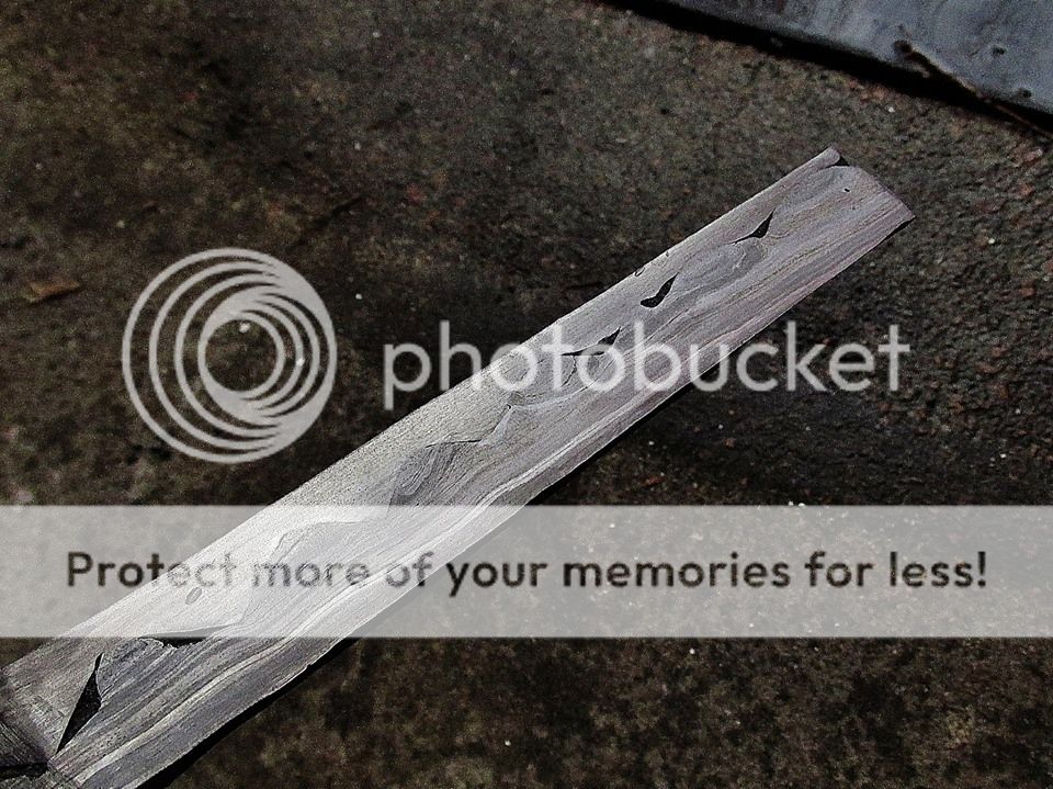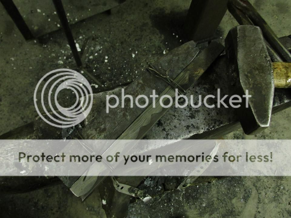 The teeth and back bar contain about 20 or so layers all together and forged together well, although I ended up not having enough tooth material and lost a couple of teeth in the end knife towards the back edge which was a real bummer, but lesson learned and the edge hardened just fine so no problems there.