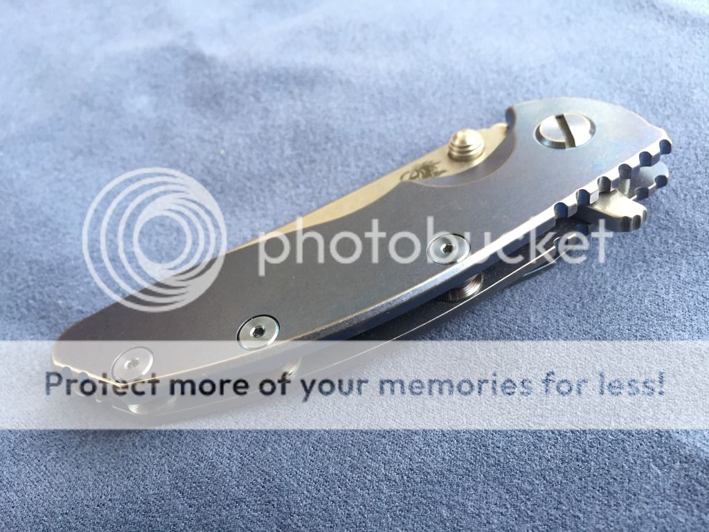 Rick Hinderer XM-18 rare full Titanium 3" Slicer with the lanyard hole delete option. A small run of these were made last year in various anodized finishes, and this one is ano'd blue. Lightly carried, blade still very sharp. I bought it from a member last year but I barely used it, and has since sat in my safe.