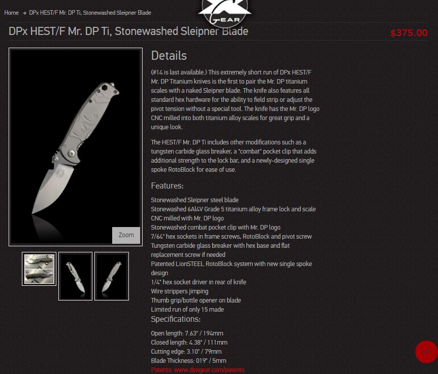 Up for sale is a knife that I just can't bring myself to use. Only 15 of these were made. This is number 14 and was the last one sold by DPx according to their website: