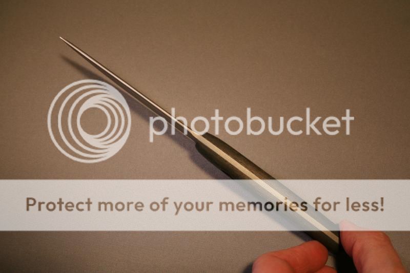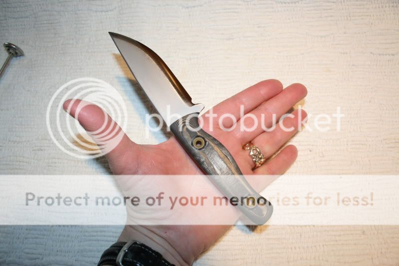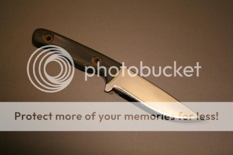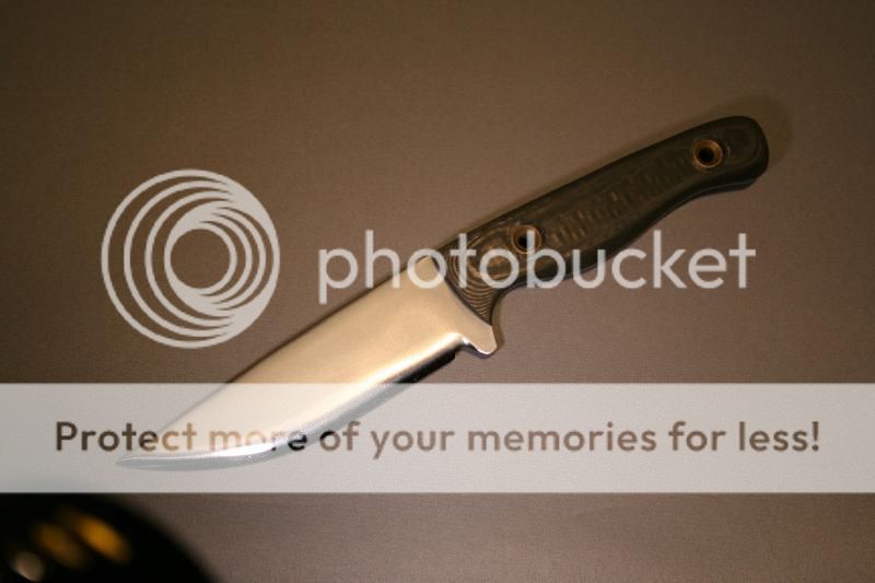 The knife is 7 3/4 OAL, blade is 4 3/8. The flats and spine have been blasted for a frosted finish. Ronded spine. The convex edge has a mirror polish and is Horton sharp. Carbon scales have a nice grippy feel. Knife has been a safe queen. Includes a sheath I found that fits OK. $495 $395