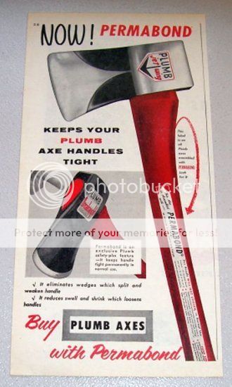 I've never had a hardened poll axe that I know of. I "tested " the beveled poll Plumb axe with a file and it doesnt seem to be hardened but I could be wrong. I got excited when I first saw it thinking it might be hardened.You are correct, that one is lacking the bevelled corners and the poll is not as pronounced (ie tall) as a National, and you are right in that it doesn't correspond to the more 'butterfly shape' of a Cedar pattern either. The Permabond definitely puts this head in the 1955 and up era. An experimental, prototype, or a modified Cedar perhaps?