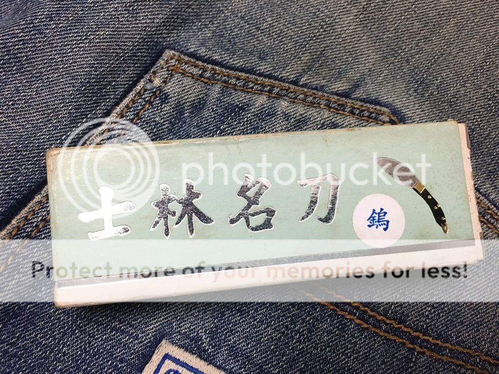 Box written as Shilin famous knife with a sticker written as "W/Tungsten" on it.