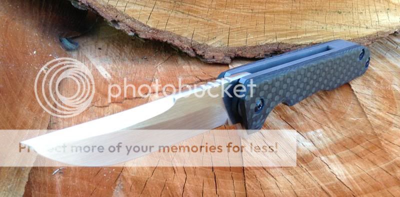 Next up is the nicest Keystone flipper I've seen. Carbon Fiber scales, thick titanium liners,hand rubbed finish and flips effortlessly! A fine example of Peter's work and hard to come by.