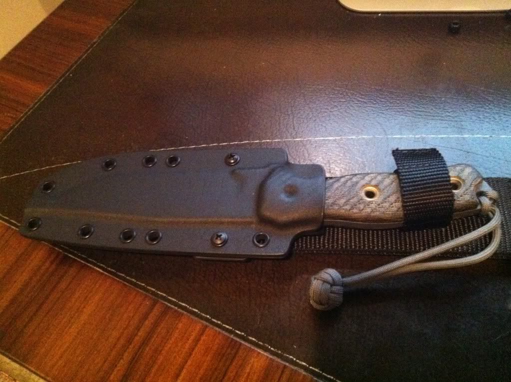 First is a Swamprat Ratmandu. This blade has seen some light use (not abuse). It has a tanker grey blade with black canvas micarta handle scales. It also comes with a custom Mashed Cat kydex sheath with cordura drop loop. $200 PRICE DROP: $185