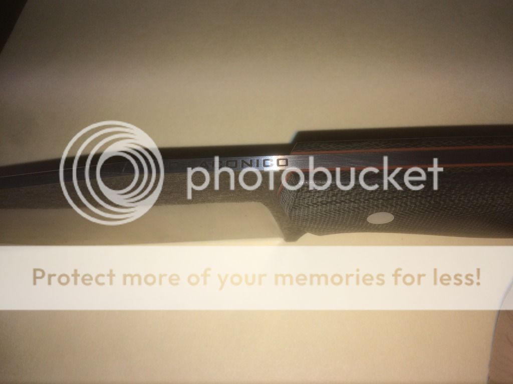 Handle: Black Canvas Micarta w/ red liners.