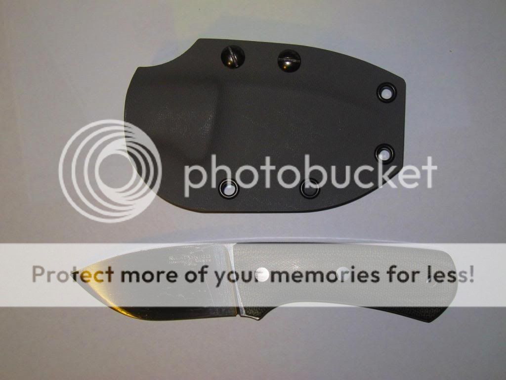Project W with black canvas handles 3/16" 01, 3" blade. Unused but with minor scratches from its kydex sheath. Patina/very light pitting on handle tang. Hand rubbed with a zero ground convex edge. Rays crossdraw G clip grey kydex sheath. $145 shipped. USA only. Paypal preferred. Sold pending payment