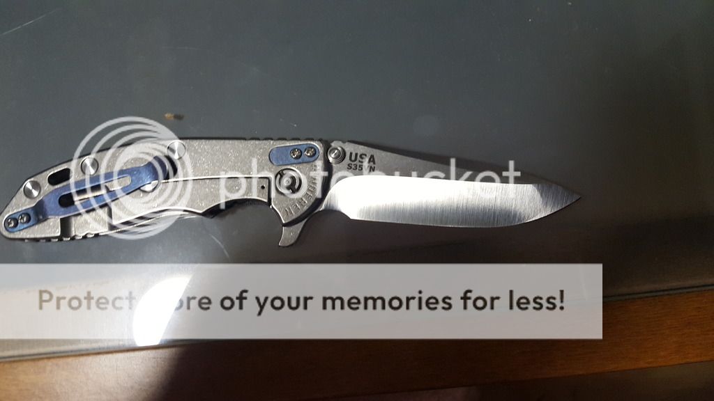 Gen 4 xm-18 3.5 Razor Edge Knives reground spanto. 15 degree per side mirror edge. Finished to a 600 grit satin on bevels factory stone wash on flats. Blue clip and filler and new blue gear stand offs. Flips awesome, centered and smooth. Trades of like value considered. For all non Hinderer guy this is not a custom. Has been carried and lightly used.Will sell for $350 or best offer Paypal priority shipped. No box with this