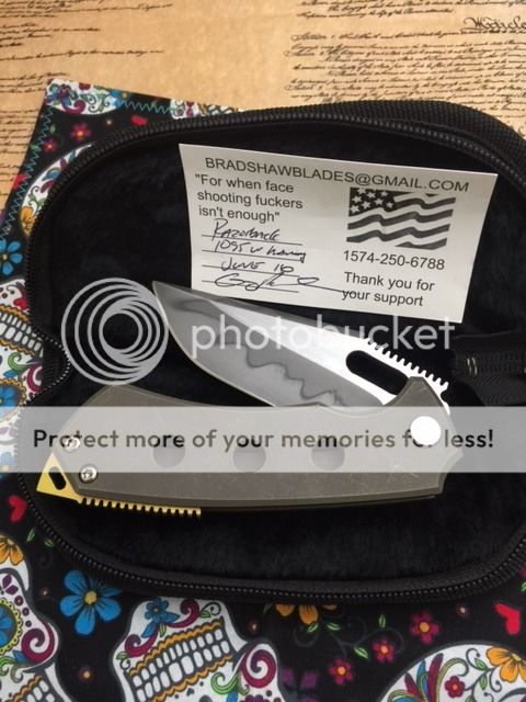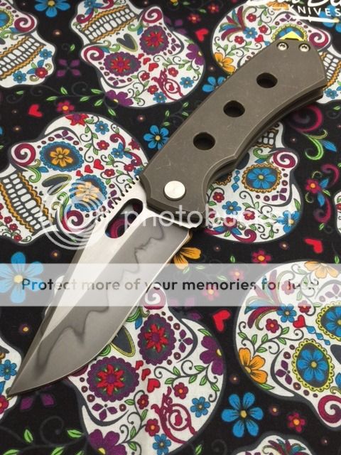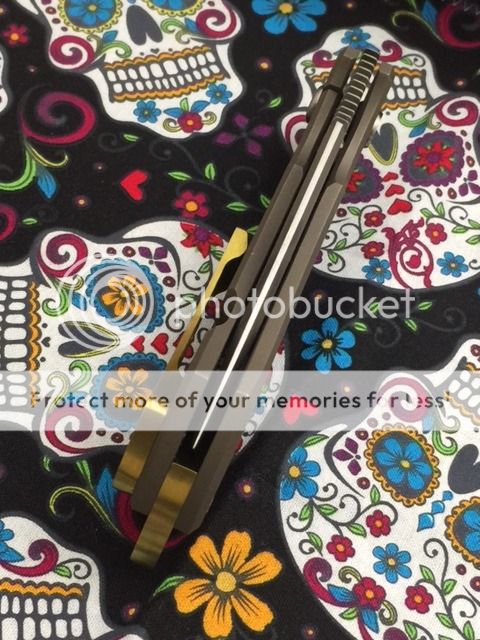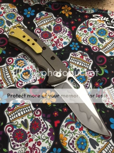 Heres a cherry! New unused Casey Bradshaw Razorback, Stonewashed Tumbled TI Frame Gold ano, 1095 Blade with Hamon,On bearings ,Zippered Pouch And Coa included