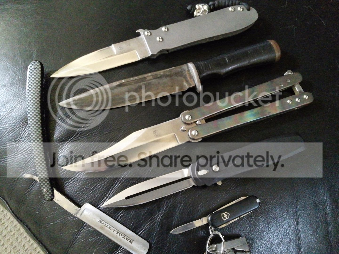 So I've sold off everything but the essentials. I'm pretty sure I have most of the major genres covered. Missing from the pic is my Snowdy Ti credit card, a Nathan Dewey CA legal balisong, a set of Ontario/Hossom Retribution folders being tweaked at Reese Weiland's, and my personal balisong (#9).