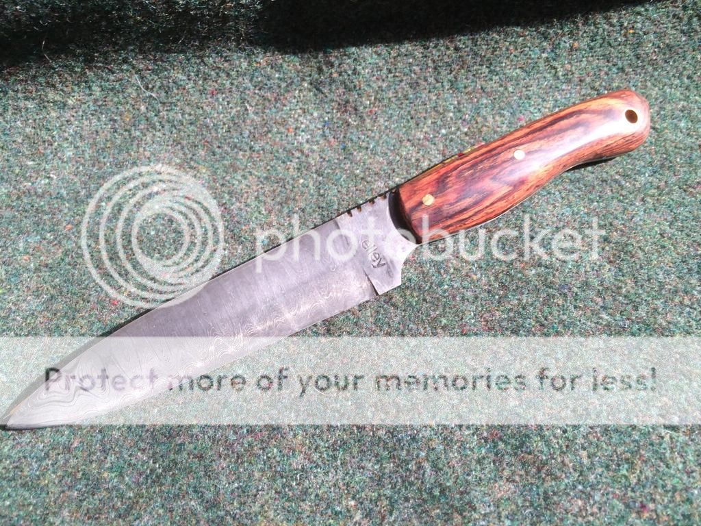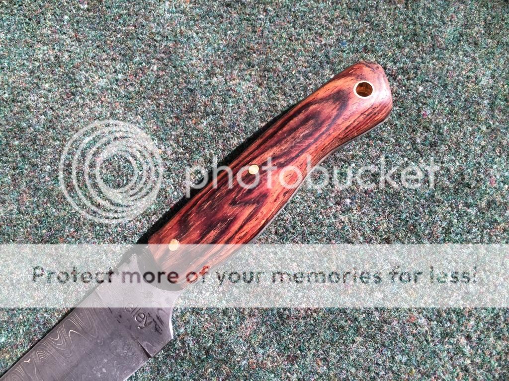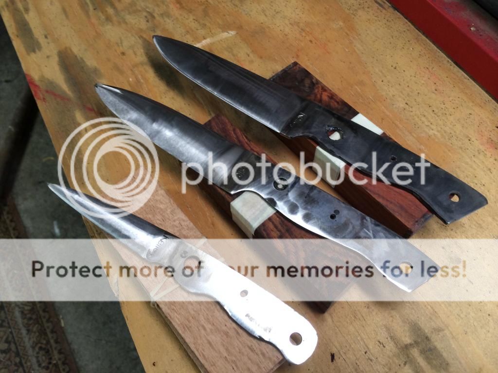 Steve, when using the damascus the pattern won't show up again until you etch it in Ferro-Chloric acid. Once your have finished the grind, heat treatment, and hand sanding put in a container filled with ferro-chloric acid and depending how deep you want the etch is how long you should keep it. I've seen several people use PVC pipe with one end capped off for the container.