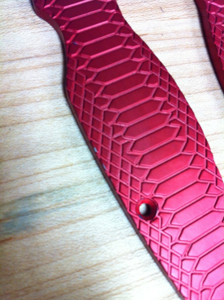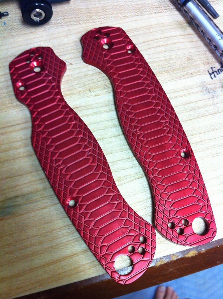 Awesome red aluminum reptilian Para 2 scales. Feels great, light and perfect fit. Only 2 super tiny nicks on the back of one handle. Otherwise immaculate. Asking $90 shipped.