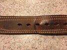 Thanks John, will mess around with the fit some more tomorrow, but it matches up perfectly to the other 2 belts, so your measurement method is spot on. It is thicker than those though. And being wider may be giving the illusion of feeling a bit tighter. Been working from home for a couple years, so haven't had to dress up in a while.Send it back John and I'll make one that fits. Not being able to size these personally creates a problem that I knew I'd have to deal with going in.