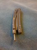 Description:As far as I know this is the rarest of the Swat Tiger models. The knife is 10.75 inches overall and has a 5 inch 154CM blade, full brass skeletonized handles, T-latch (great latch, nice resistance). It's near mint as far as I can tell, got it at Blade Show a year or so back.
