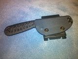 Description: I’ve had this one for a while and it’s held up amazingly. I put a strider-like cord wrap on it and it is equipped with a custom kydex sheath made by a forumite, I’ll also throw in the tek-lok. I have the bag and some other goodies I’ll throw in too.