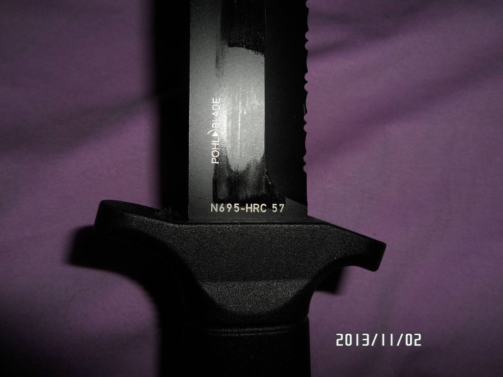 Eickhorn-Solingen KM-2000. Part-serrated tanto blade made from Bohler N695, hardened to approximate 57 RC and coated with Kalgard. Never used, never sharpened. Other than the bladel, the description is identical to that of the KM-5000 listed above. Pictures below. Reduced to $125 or best offer shipped to the lower 48.