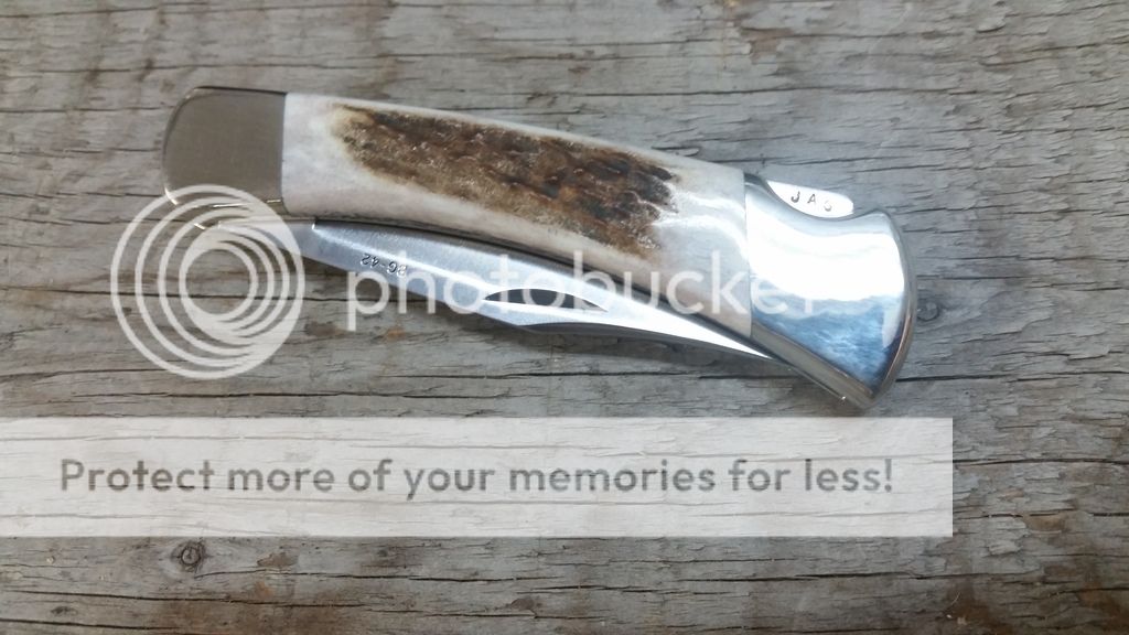 Here is my latest customization, a BG-42 with "Script Buck Stamp" 110 in NS and Elk Stag. The scales are from the brow tine of a large Elk Shed. I find this first tine on Elk the most dense, making it a nice choice for handle material.