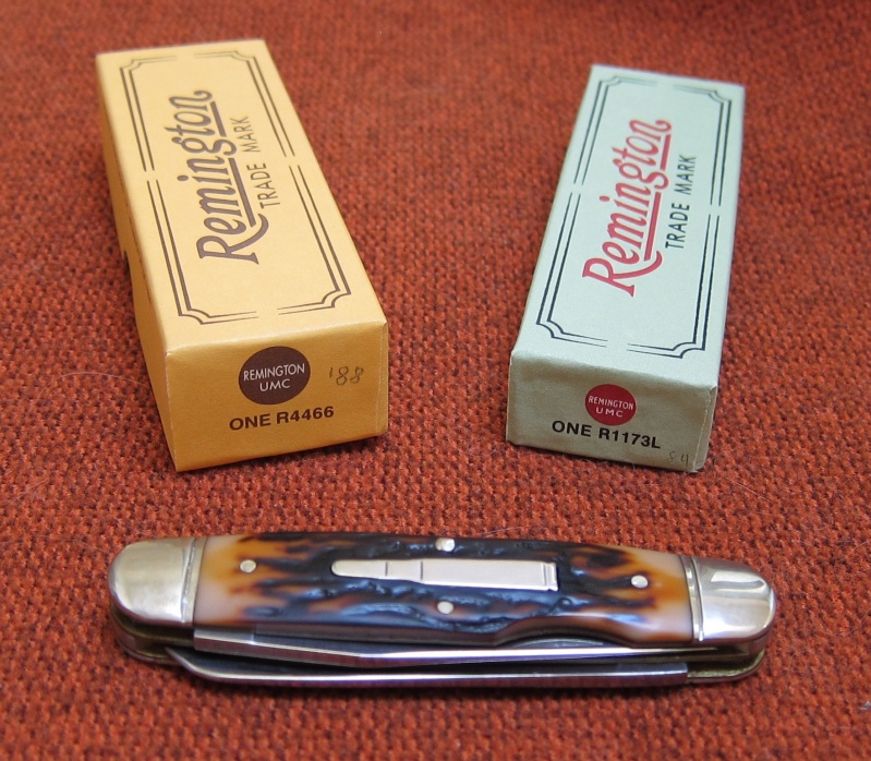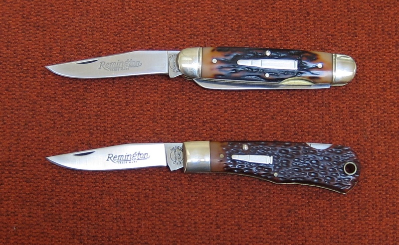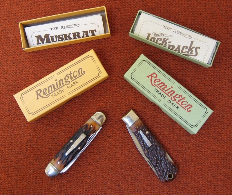 I just acquired two Remington knives, a muskrat and a lockback. The lockback is from 1984 and the muskrat is from 1988. Here are the pics: