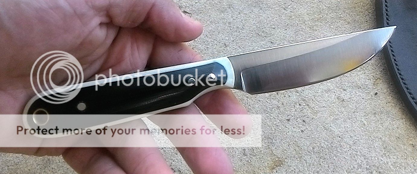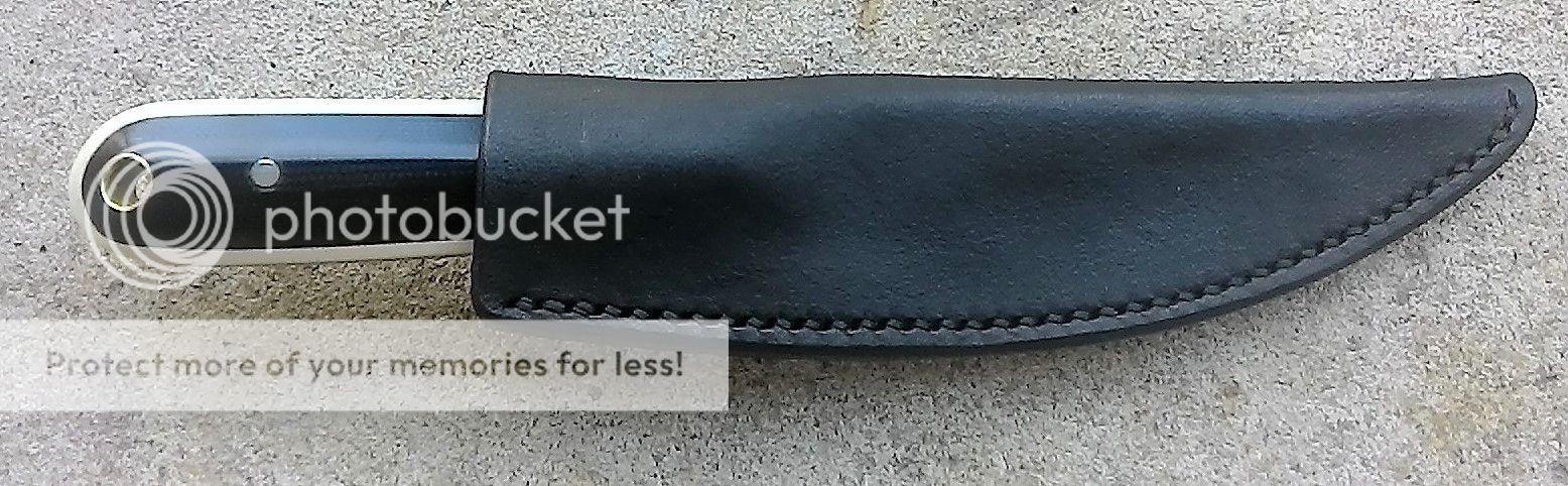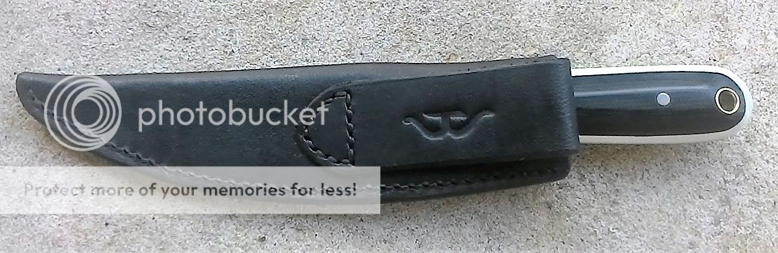 It comes with a handmade leather belt sheath. This knife feels great in hand.