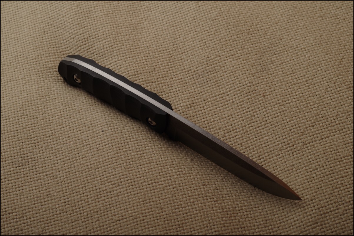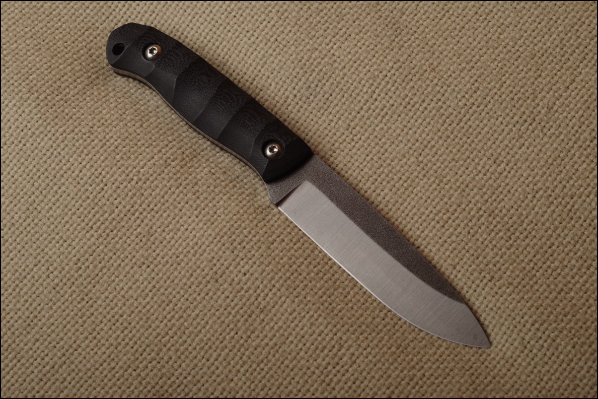 Scales:Black Canvas micarta on M3 fasteners with Torx screws.