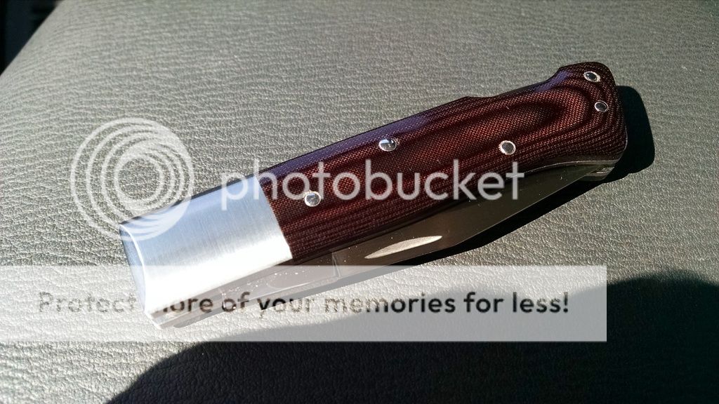This knife was carried alone in a watch pocket on and off for a month or so. I'd guess it spent about ten days in the pocket total and I can't remember using it as anything other than a letter opener. The only thing keeping this from being totally mint is a tiny mark on the bolster that I was able to capture after several frustrating minutes of trying. It is shown in the last picture below and is incredibly faint. The only way to see it is if the light catches it as shown.