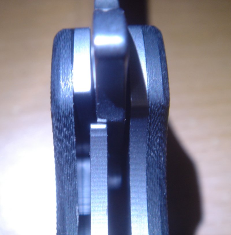 Just got a ZT 0350 (first ZT... woohoo!). I like the look and feel a lot, but I noticed there was some vertical blade play. Upon closer inspection, it looks like the liner is not actually making contact with the tang (see pics below). The gap is pretty slim. I can slide a piece of thin paper (receipt paper, a bit thinner than typical copy paper) through that gap with the blade in the locked open position. When I shake the knife, I can hear rattling as the blade rocks back and forth and hits the blade stop and liner lock.