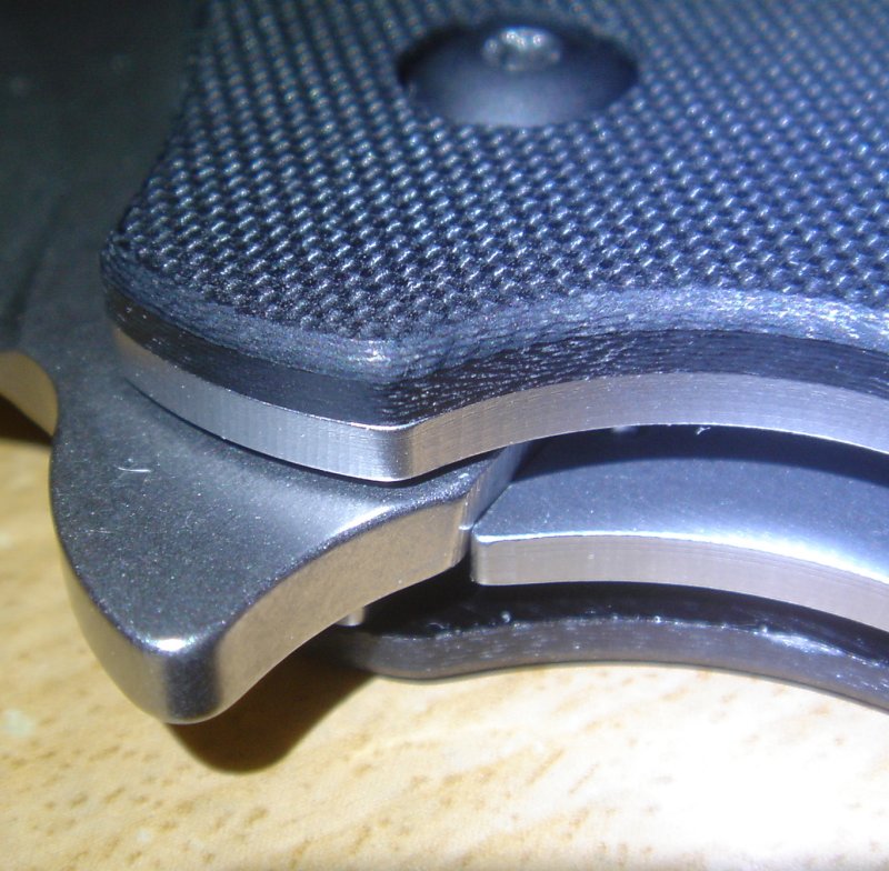 I tried loosening all the screws (handle & pivot) and re-tightening it to see if maybe it was tightened in a misaligned position. The scales don't look misaligned, but since the gap is so thin, I probably can't see it with the naked eye.