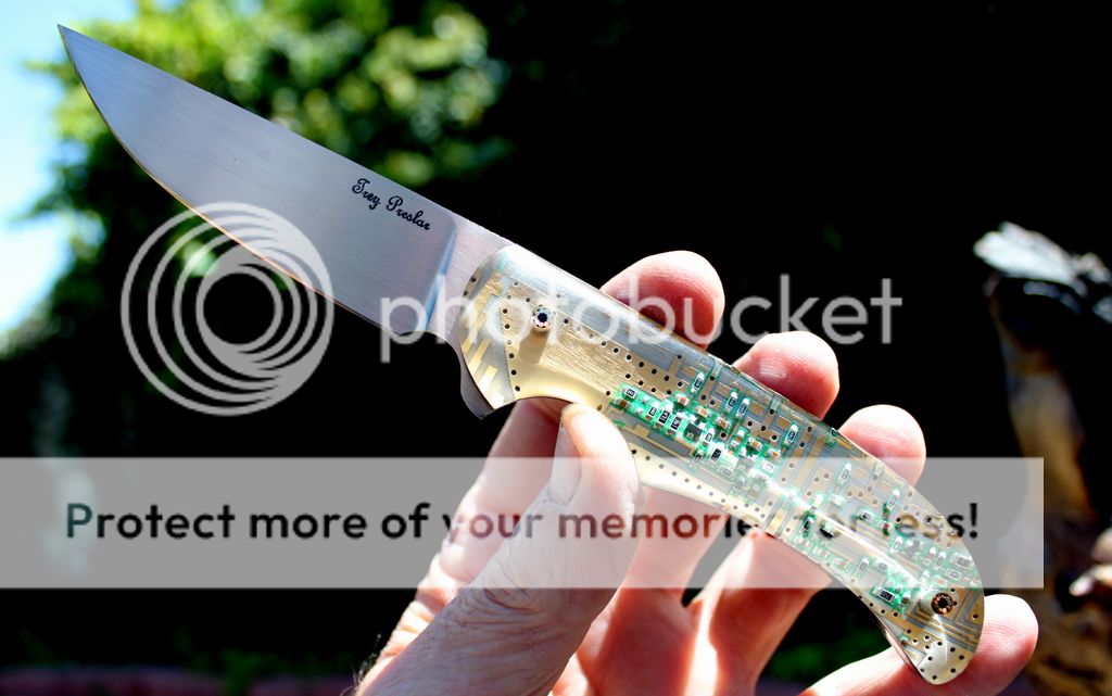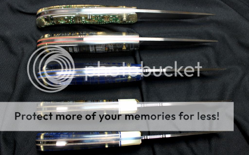 Handle materials are made from computer motherboards and Acrylic Resin. The gold plating testing 18K on all of them except for #4. Its a motherboard from a GPS and the plating tested 22K.