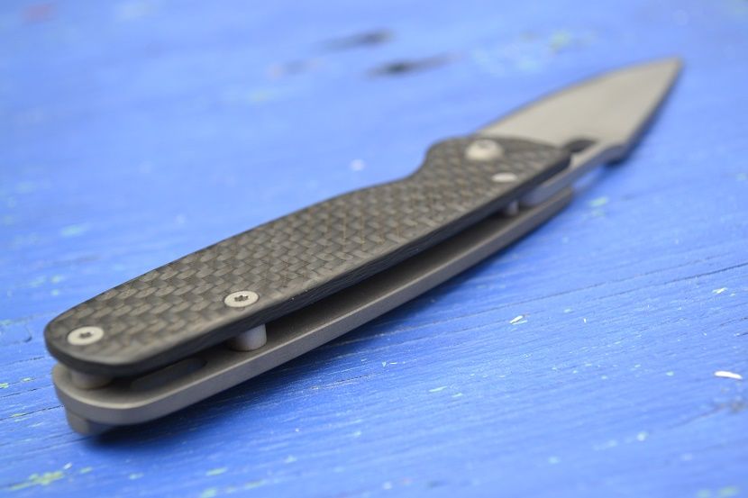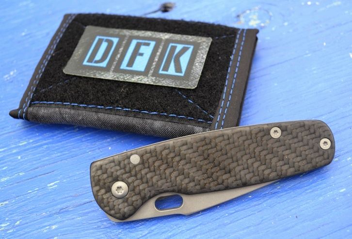 I'm really excited about this new RF2 in Carbon Fiber configuration!. The Carbon Fiber Scale side shaved well over an ounce off of the total weight which dropped it to just over 4 ounces (about 116 grams). It carries great in the pocket and also features my new thicker DFK carved Titanium clip.