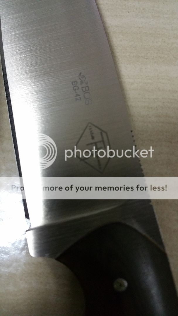 Trace Rinaldi TTKK(BG42)- one off TTKK from Trace, larger than usual- 5 1/2" BG42 blade, Paul Bos HT. OAL- nearly 10". 5/32" thick, maroon micarta scales with mosaic pins. Never used or carried. Comes with Kydex sheath with tek lok. $385+3.5% paypal fees