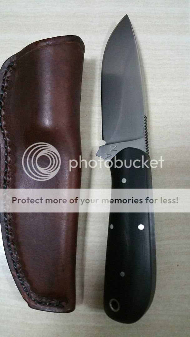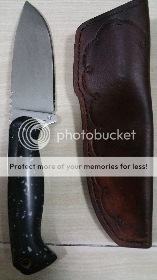 Early NWA EDC- 3" 01 blade, OAL- slightly more than 6 1/2". Black linen micarta scales, 3/16" thick. Never used or carried, slight patina spots on blade. I blued the handle tang area. Comes with Nick's brown leather sheath. $130+3.5% paypal fees