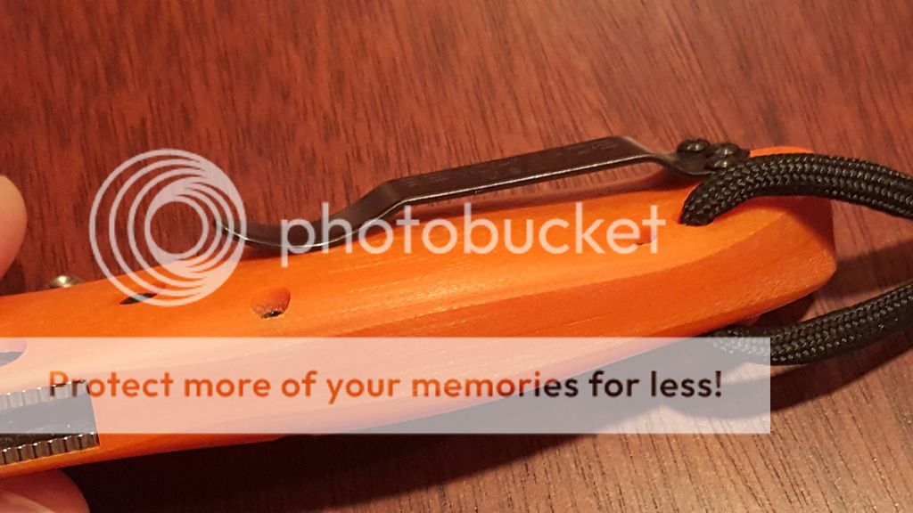Great condition - carried and used with some scuffs and marks on the clip and scales as shown in the pics below. I didn't notice the spots near the tip of the blade until I looked at the photos and they came off with a microfiber cloth. Carefully stropped and I might have also touched up the edge on a diamond stone once or twice but factory bevel remains. Deployment is light and smooth, lockup is sold and centering appears to be just a hair to the left. Scales were purchased from KnivesShipFree. There is a very small gap on the back of the G10 scales where they don't quite come together as shown in the photos below. I only snugged up the screws and didn't fiddle with it so an adjustment or tightening them a bit might eliminate it, although it's small enough that it hasn't collected any debris when I carried or used it. Comes with original box and baggy. The toggle on the baggy drawstring is broken.
