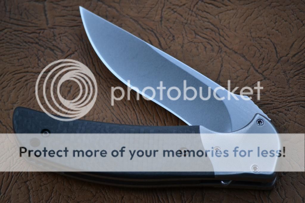 **S O L D** Brand new and mint condition custom RJ Martin Q36. Blade is 4". Handle scales is carbon fiber. Orange peeled titanium bolster. Outstanding flipping action. Featuring RJ's roller thrust bearings. The knife is flawless. Never been used and never been carried. I am the first owner.