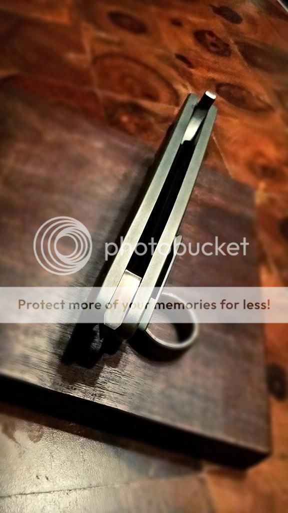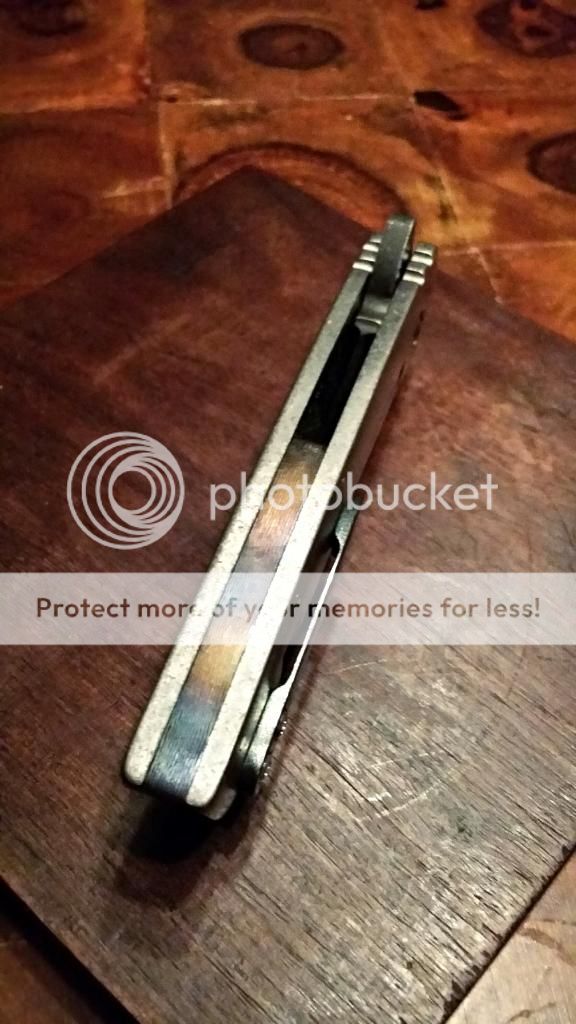 First up is a Ferrum Forge BAK, listed for $300 less than makers price. Features N360 steel, S7 levels of impact resistance, but stainless. Blade is 4", Ti slabs are THICK. Steel lockbar insert, ceramic bearings, and Hoback rolling detent. I reversed the skull crusher and polished/anodized it as well as the pivot. Knife is rock solid in every which way. Flips with authority. Asking $850 shipped net.