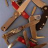 Blade, scissors, bottle opener/can opener/ screwdriver, pliers, reamer, and Phillips screwdriver.