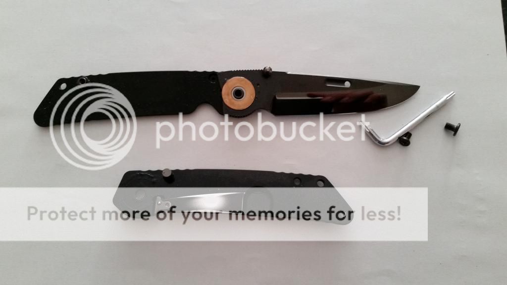 The anodising on this knife got scratched on one of the liners (on the inside of the liner lock arm). I did buff the scratch out with wet and dry paper as in this photo...
