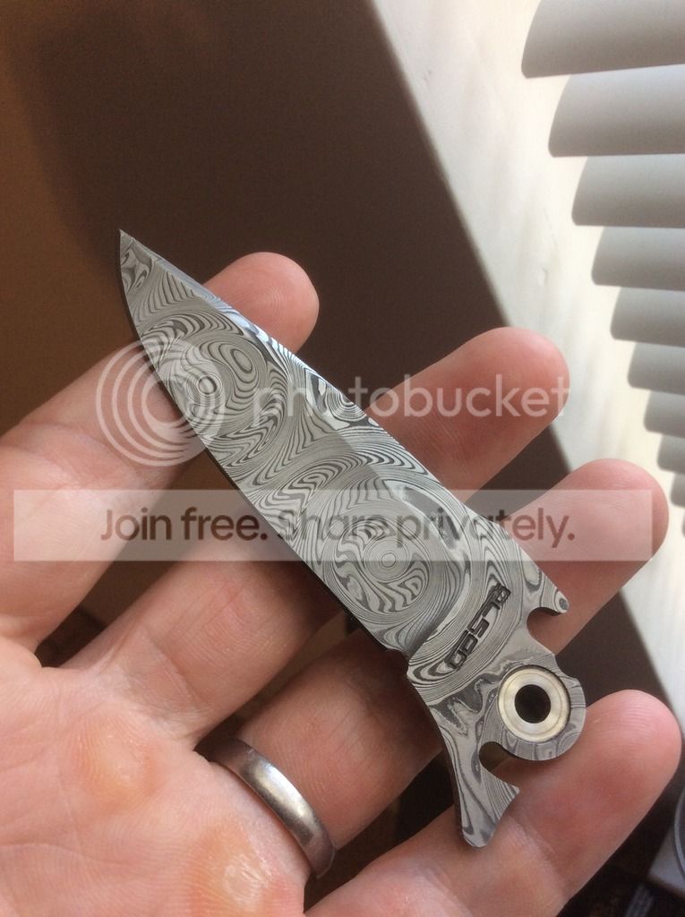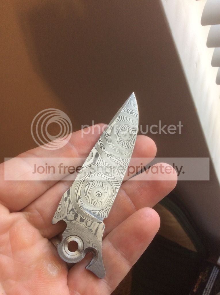 I originally had this blade on my M9 Quick Flip custom by Rod Olson but decided that I wanted a different blade shape so I sent it back to Mr. Olson and had him make me a new blade. It is hand ground by Rod. This blade would be a cool display piece, chance to reshape the Damasteel into a tool or pendant, or a chance to make a handle for this blade and have an awesome knife. I'm asking $89 and I pay the Paypal fees and shipping.