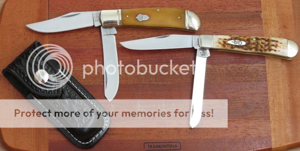 Quality wise, there is no play on the blades and both open with a distinctive "smack." The springs are on the stout side, by no means nail breakers and there is a very strong middle point, like the cap lifter / flat screwdriver on a Victorinox. The clip point blade is slightly going to the left when closed but so does the one on the Case. As far as the steel goes I will probably never know its mileage as this blade will never carve wood. I have my Mora for that.