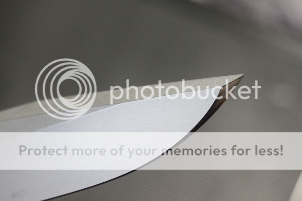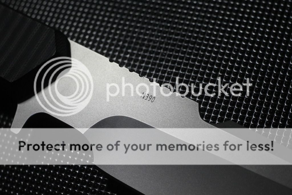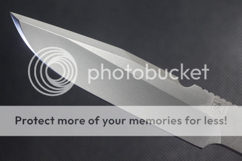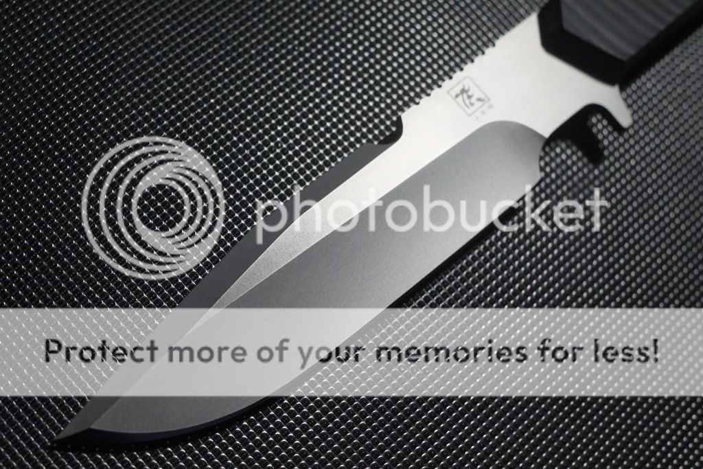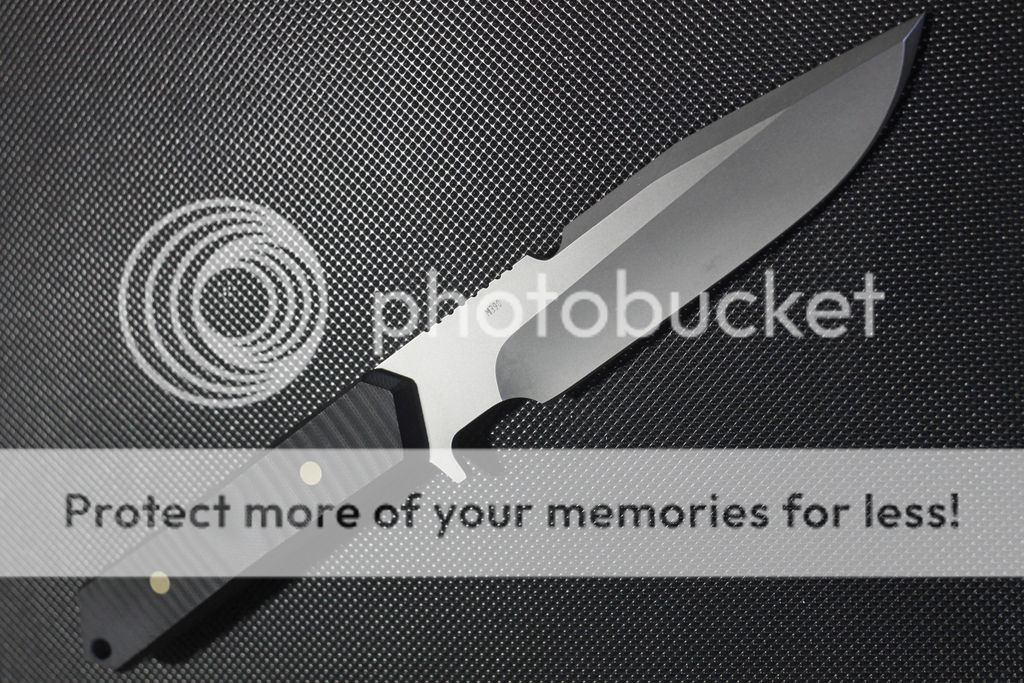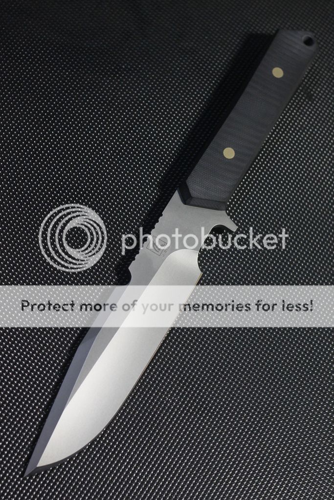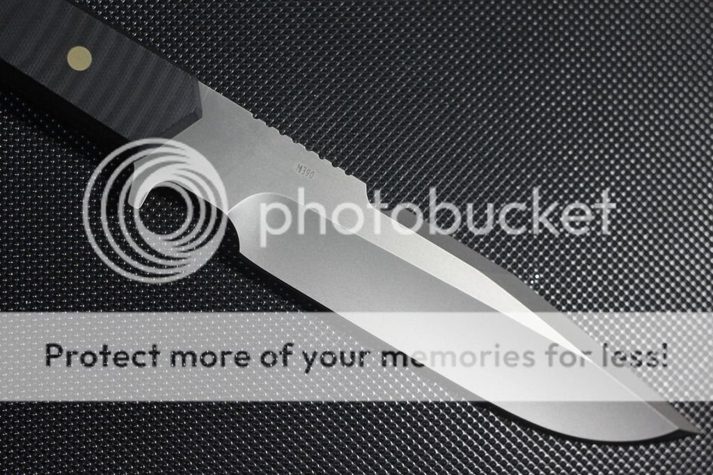 Here is my new fixed work,made in Bolher M390 super steel Peter HT at 60RC.The blade is 6inch with deep hollow grind,combo swedge is hollowed too.Convex grind blade tip.The handle is made from black G10 and copper pins.
