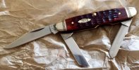 I like those Case Juniors, got one in ginger ale Winterbottom bone. Had a Carribean Blue and lost it. They make a really good EDC, practically invisible in the pocket.While not old this case is also a cattle knife. The only jr cattle pattern currently made to my knowledge. Everybody who likes three blades should try one. I sure like lookin' at it.