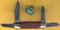 In the second pic from the left, Schrade Walden, Schrade Walden, Diamond edge, KeenKutter and a two-blade Maher & Grosh.