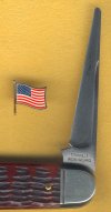The blades are different, and it has a Punch! No tang mark, so it may have been a sub-contract with an etch which has gone away! Either a Schrade or an Ulster!Charlie, the middle knife in the bottom photo looks to have a spear instead of a clip, compared to the knives to the right. Are the other blades all the same or something different?
