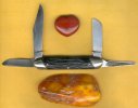 Interestingly, the main blade is on the pile side spring, and is a "lefty"!! Note the slant bolsters, and Imitation Blackened Stag!!